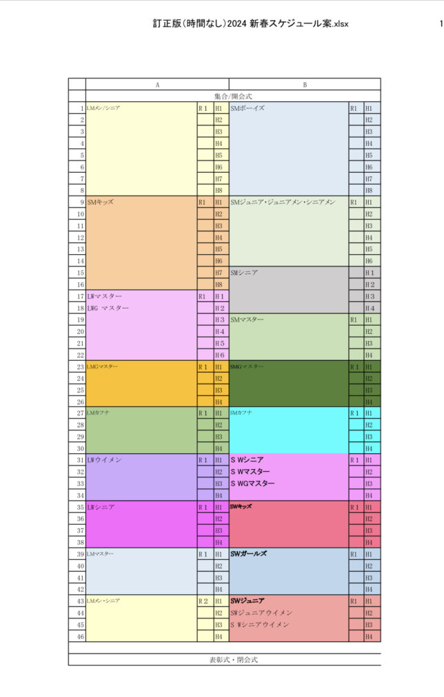 ★SWシニア 20名 エントリー数により統合の可能性があります。