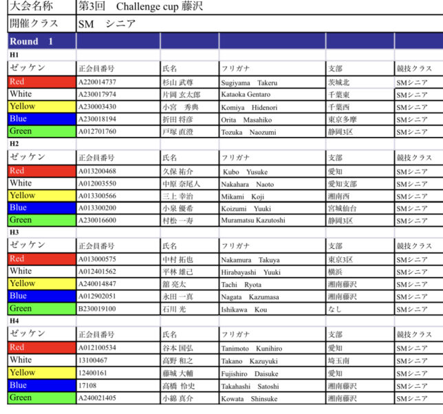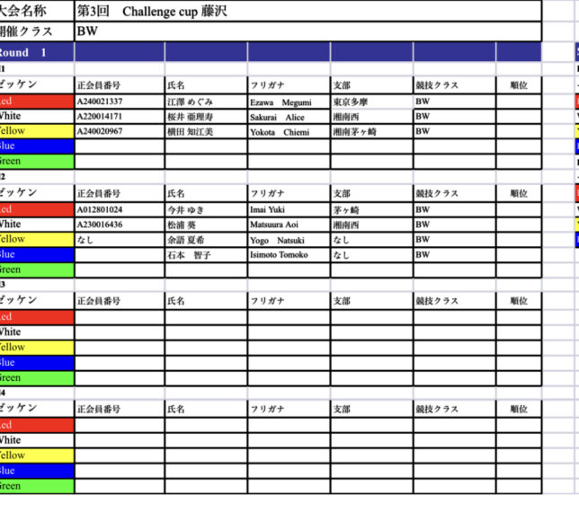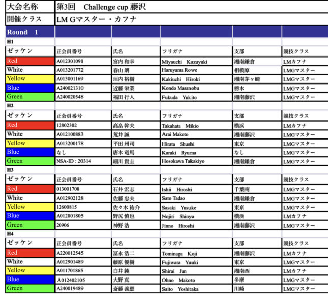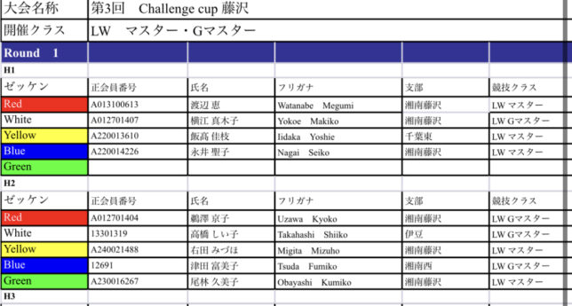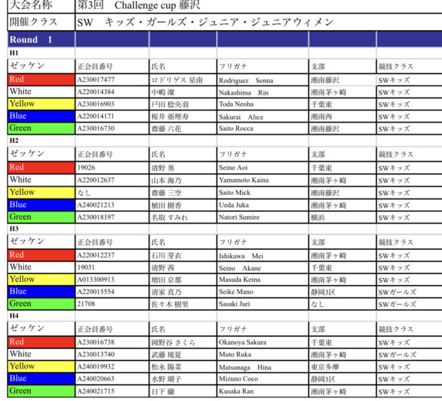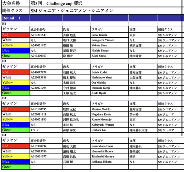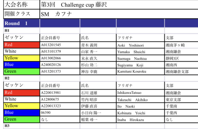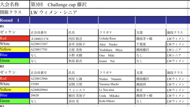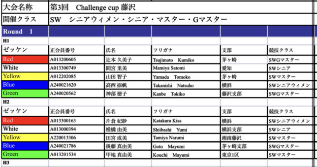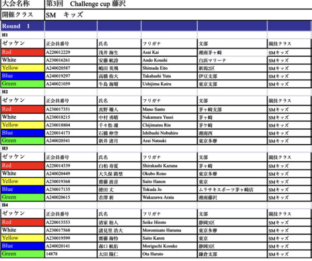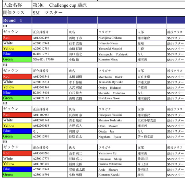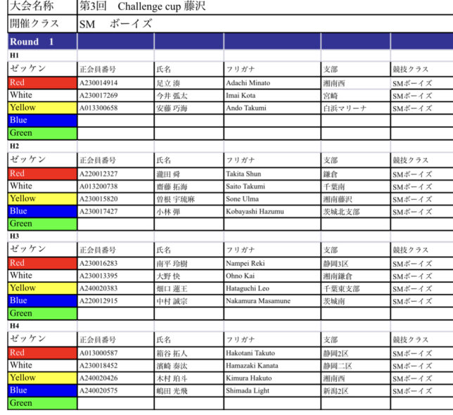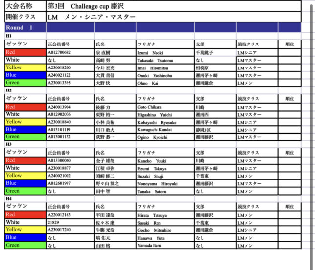 第3回challenge cup藤沢 ヒート表ご案内