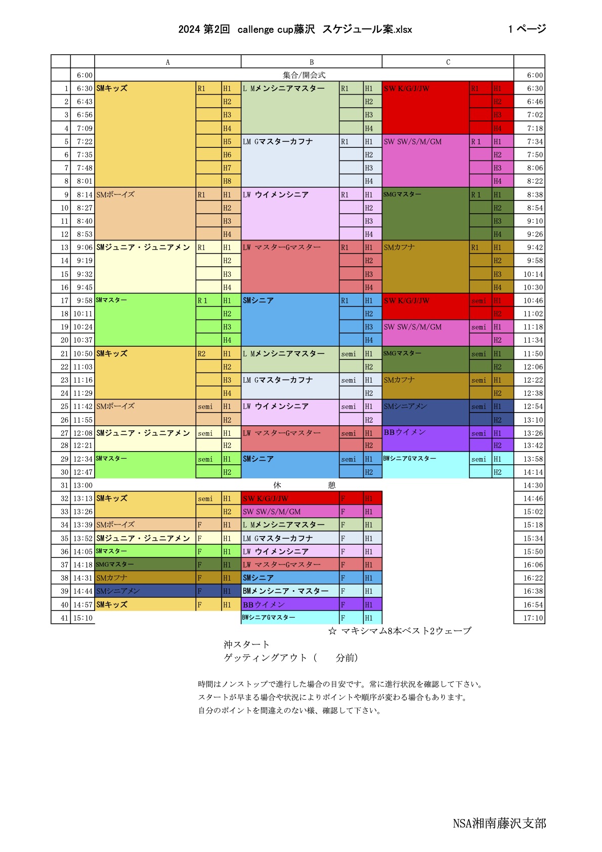 NSA公認Aランク 第2回challenge cup 藤沢のスケジュール及びヒート表を発表致します。