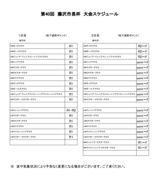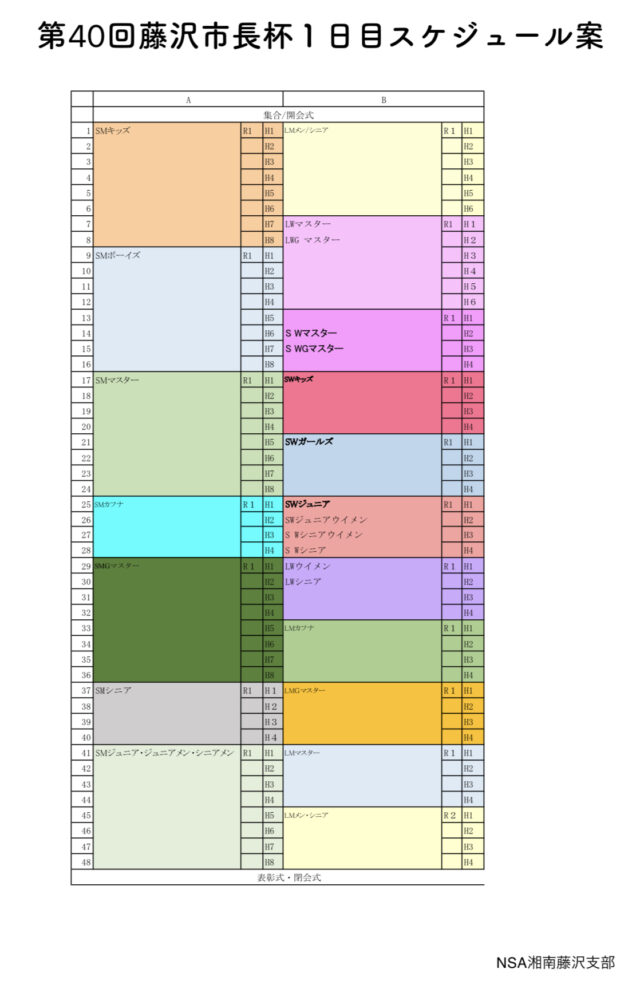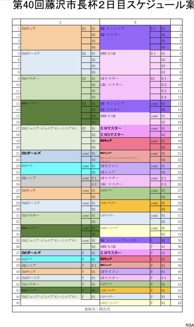 NSA AA 公認大会 第40回 藤沢市長杯 大会スケジュールのご案内