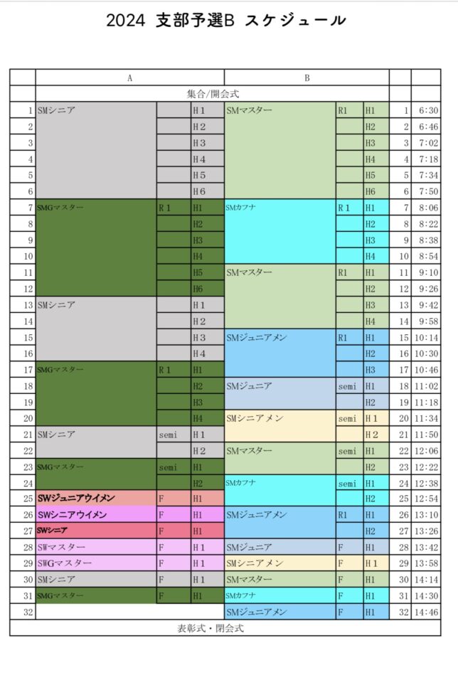 ★BWシニア、Gマスター 10名(3・4・5級NSA BWシニア、BWグランドマスタークラス)エントリー数により統合の可能性があります。